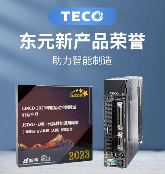 頒獎典禮表彰了伺服、運(yùn)控/直驅(qū)領(lǐng)域優(yōu)秀企業(yè)品牌、創(chuàng)新技術(shù)、產(chǎn)品、行業(yè)應(yīng)用。其中東元新產(chǎn)品JSDG3-E系列伺服,榮獲【CMCD2023年度運(yùn)動控制領(lǐng)域創(chuàng)新產(chǎn)品獎】。