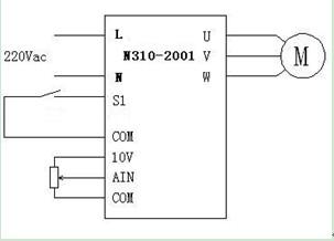 每套設(shè)備使用0.75KW變頻器和11KW變頻器;N310-2001-H1X負(fù)責(zé)拖動(dòng)牽引電機(jī)帶動(dòng)牽引輥對(duì)吹塑好的薄膜進(jìn)行牽引;N310-4015-H3X負(fù)責(zé)拖動(dòng)擠出機(jī);牽引電機(jī)規(guī)格為0.75KW,50HZ,3.1A,1400RPM,帶有減速機(jī);擠出電機(jī)規(guī)格為:380V,11KW,22.6A,1400RPM,50HZ,帶冷卻風(fēng)機(jī),規(guī)格為95W,380V,50HZ,1400RPM;